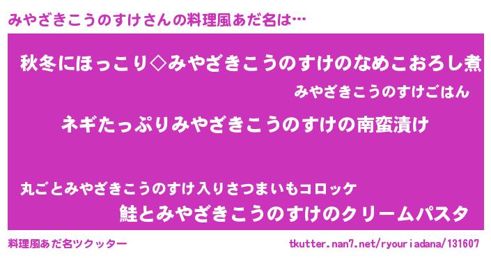 | 胡散臭い通販商品みたいなあだ名 | 『億万長者になれるブレスレット…その名も「みやざきこうのすけ」』 |