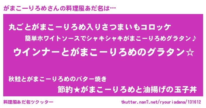 | 欧米人風あだ名 | 『がまこーりろめクリステル』 |
