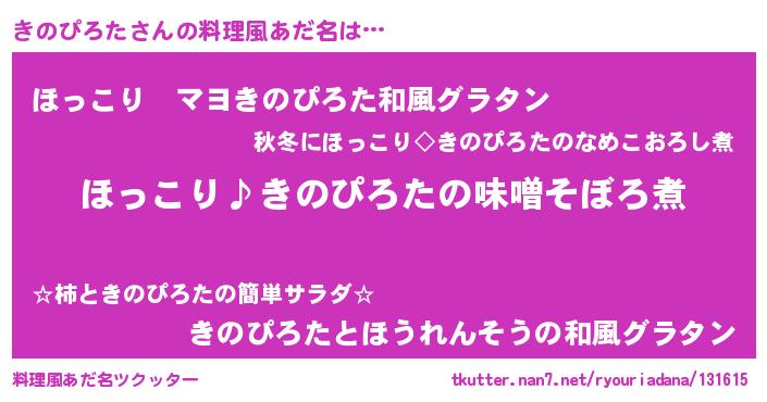 | 男性向けラノベタイトル風あだ名 | 『きのぴろたの憂鬱』『緋弾のキノピロタ』 |