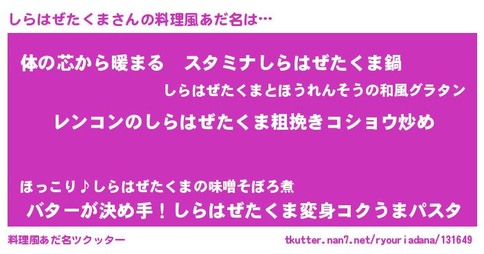 しらはぜたくまさんの料理風あだ名をツクッター!