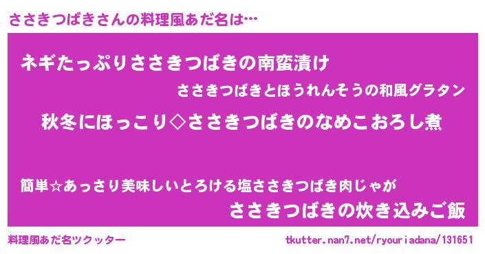 | 男性向けラノベタイトル風あだ名 | 『ささきつばきに滅ぼされるだけの簡単なお仕事です』 |
