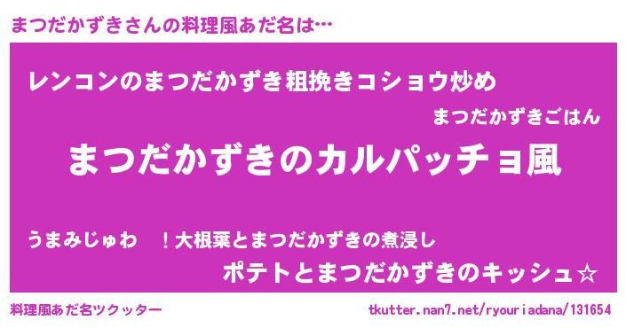 | 意味不明あだ名 | 『住所不定無職まつだかずき(56歳)』 |