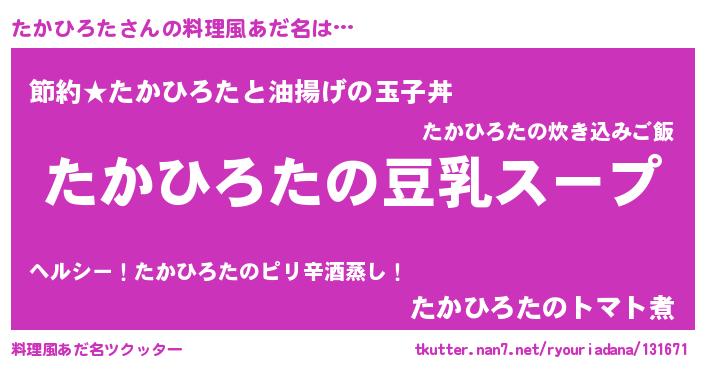 | ポケモン風あだ名 | 『ヒタカヒロタ』『タカチュウ』 |