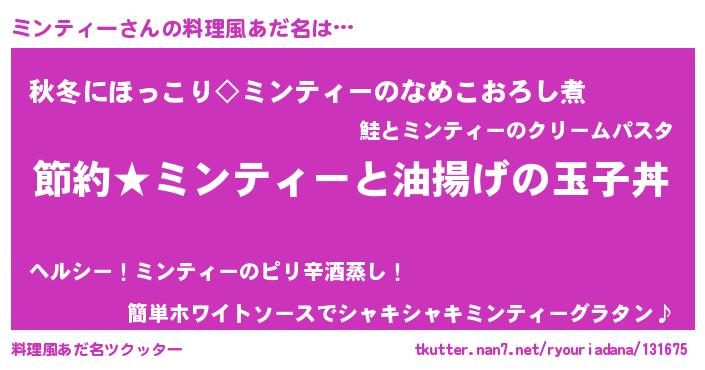 | 意味不明あだ名 | 『ペロリンミンティー』『自称ミンティー』 |