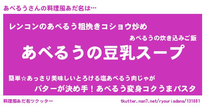 | 女子向けラノベタイトル風あだ名 | 『あべるうは平凡を望む』 |