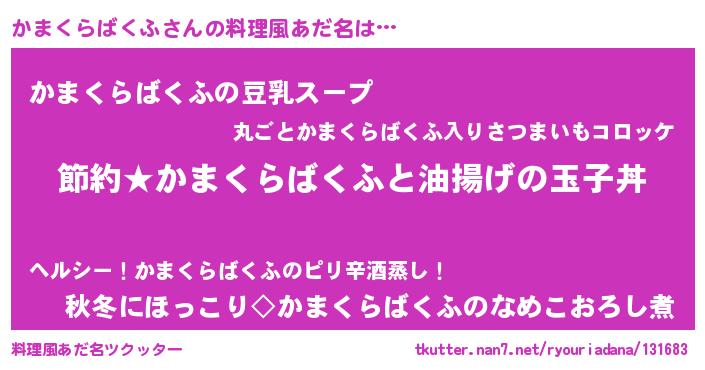 | 女子向けラノベタイトル風あだ名 | 『かまくらばくふ姫と円卓の騎士』 |