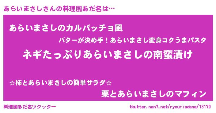 | ヒーロー風カッコイイあだ名 | 『スーパーアライマサシ』『仮面アラダー』 |