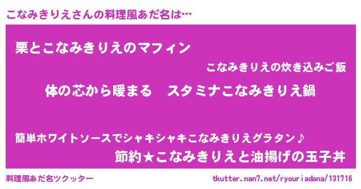| 恥ずかしいあだ名 | 『こなっちょ』『プリティーこなみきりえ』 |