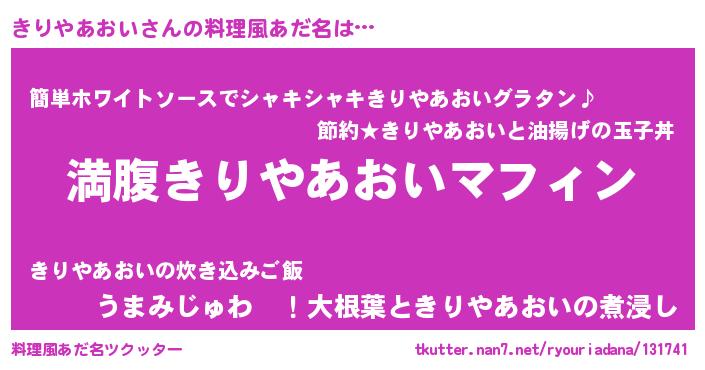 | 意味不明あだ名 | 『永久保存きりやあおい』 |