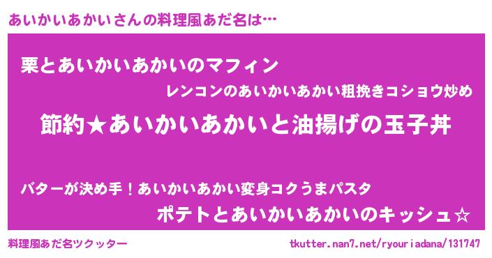 | 男性向けラノベタイトル風あだ名 | 『あいかいあかいの憂鬱』 |