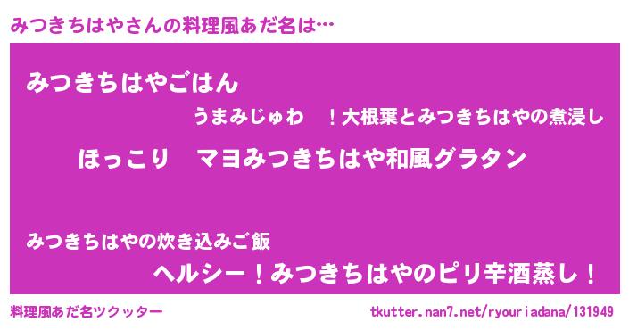 | 意味不明あだ名 | 『住所不定無職みつきちはや(91歳)』 |