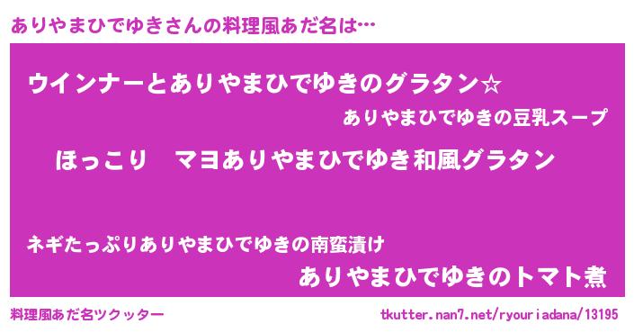 | 意味不明あだ名 | 『住所不定無職ありやまひでゆき(1歳)』 |