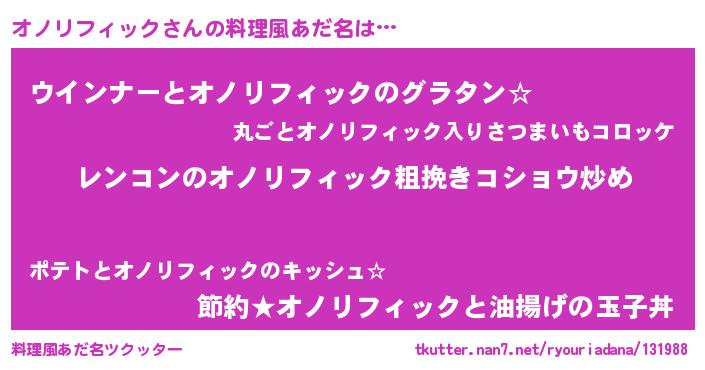 | 意味不明あだ名 | 『自称オノリフィック』 |