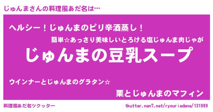 | 男性向けラノベタイトル風あだ名 | 『ダンジョンにじゅんまを求めるのは間違っているだろうか』 |