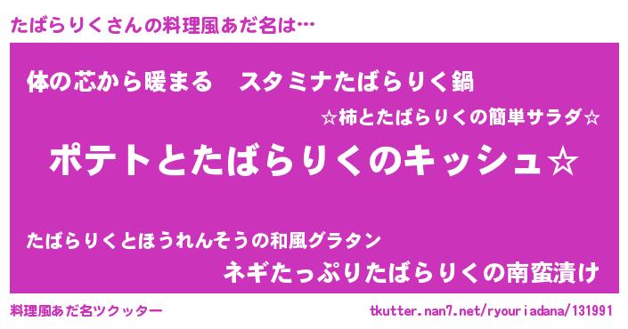 | 胡散臭い通販商品みたいなあだ名 | 『伝統あるサプリメント…その名も「たばらりく」』 |