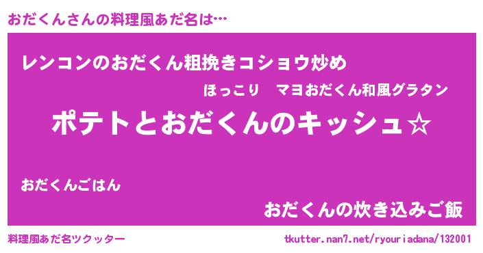 | 女子向けラノベタイトル風あだ名 | 『おだくんの卵を拾いまして』 |