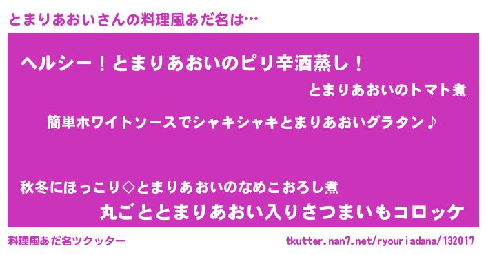 | 男性向けラノベタイトル風あだ名 | 『とまりあおいの嫁は女の子じゃないと思った?』 |