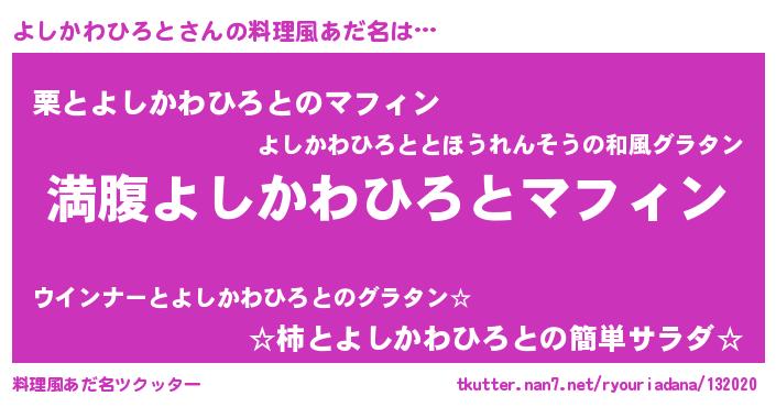 | ヘコむあだ名 | 『よしかわひろと(苦笑)』『豆乳』 |