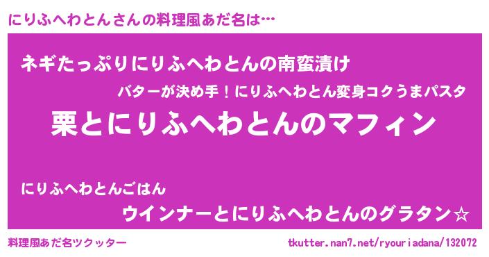 | 恥ずかしいあだ名 | 『プリティーにりふへわとん』『にりちん』 |