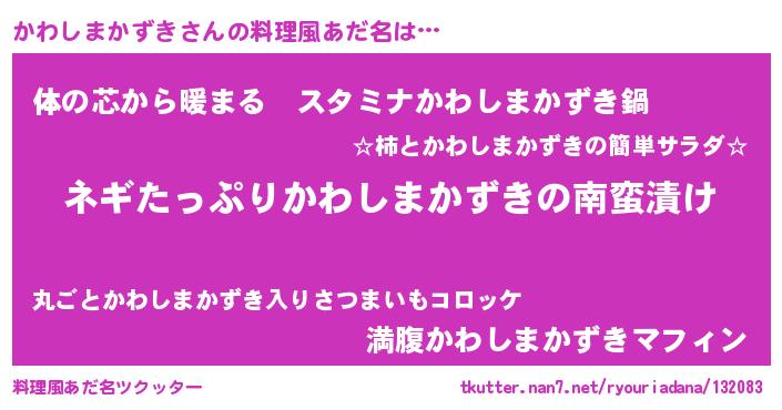 | 2回繰り返すあだ名 | 『かわかわ』『かかわわ』 |