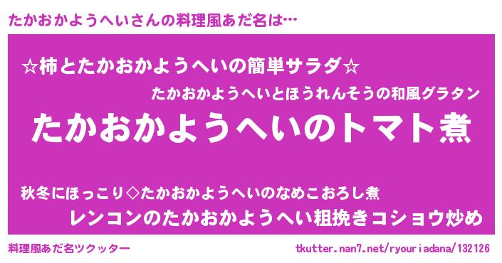 | ヒーロー風カッコイイあだ名 | 『友情の使者たかおかようへい』 |