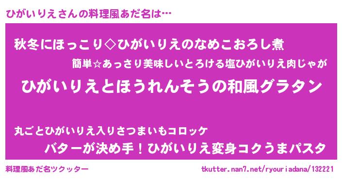| 意味不明あだ名 | 『ニラ科ひがいりえ属』 |