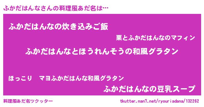 | 女子向けラノベタイトル風あだ名 | 『ふかだはんなの玉の輿計画!』 |