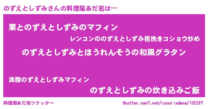 | ヘコむあだ名 | 『のずえとしずみ(笑)』『のずにゅー』 |