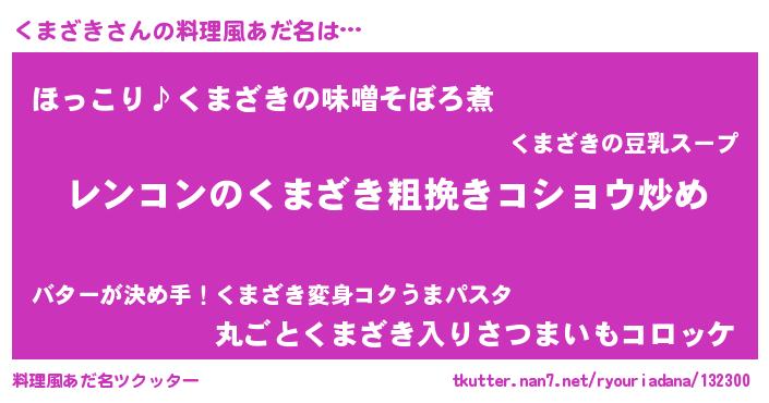 | ヘコむあだ名 | 『くまふぇ~』『くまっちょ』 |