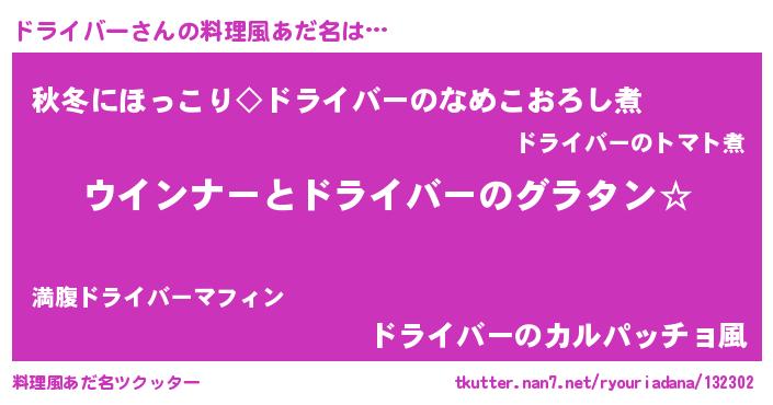 | 意味不明あだ名 | 『ドライバーフォーエバー』 |