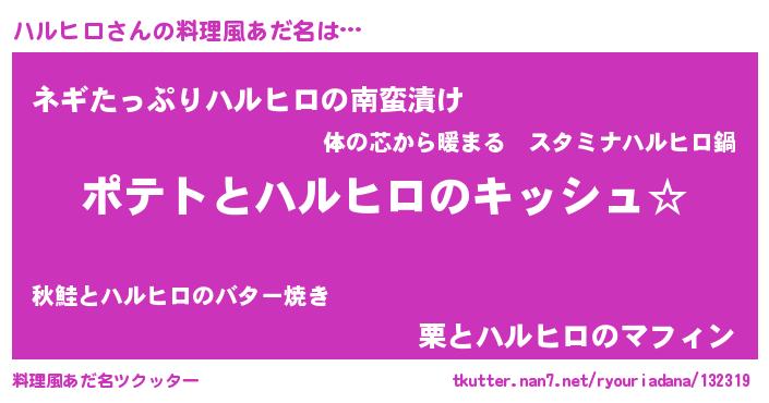 | 胡散臭い通販商品みたいなあだ名 | 『伝統あるサプリメント…その名も「ハルヒロ」』 |
