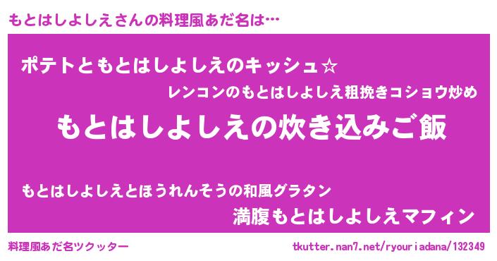 | ポケモン風あだ名 | 『メロモット』『ヒモトハシヨシエ』 |