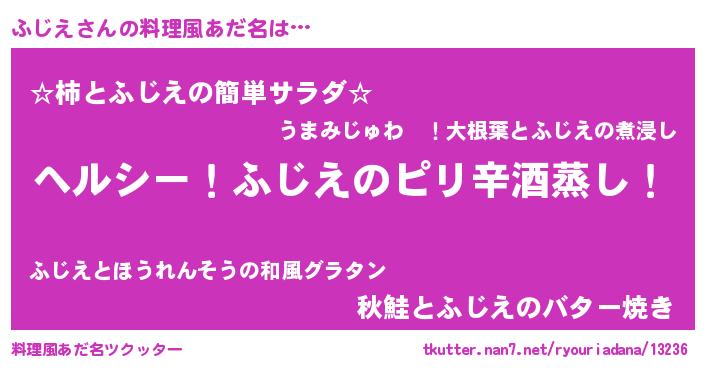 | ヘコむあだ名 | 『ふじえ(笑)』『なまこ酢』『ふじを』 |