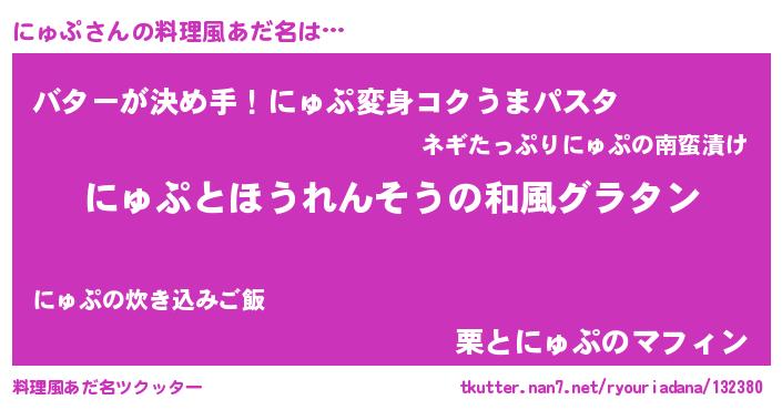 | ヒーロー風カッコイイあだ名 | 『慈愛の使者にゅぷ』『スーパーニュプ』 |
