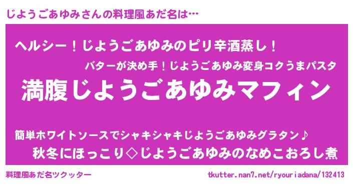 | 可愛いあだ名 | 『じようごあゆみママ』『じようちぇる』 |