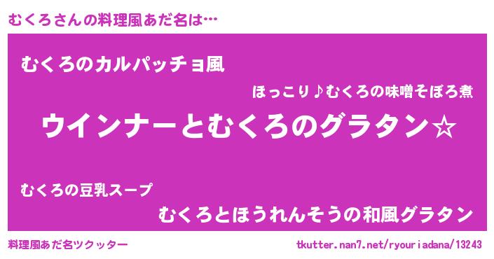 | 欧米人風あだ名 | 『むくろクリステル』『ダレノガレむくろ』 |