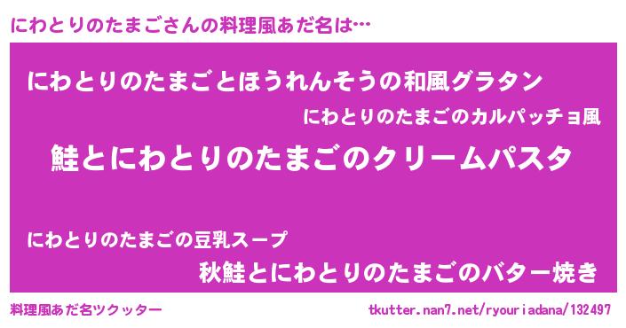 | ヒーロー風カッコイイあだ名 | 『慈愛の使者にわとりのたまご』 |