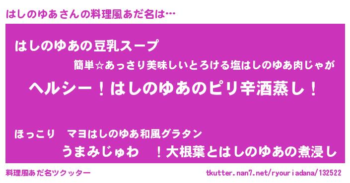 | 意味不明あだ名 | 『自称はしのゆあ』『永久保存はしのゆあ』 |