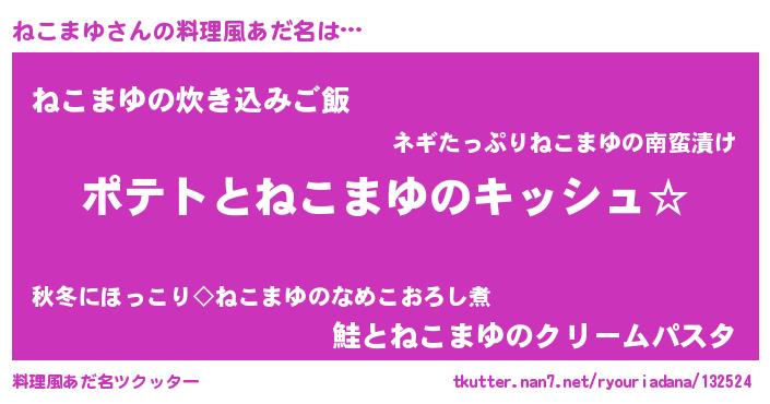 | 女子向けラノベタイトル風あだ名 | 『ねこまゆの卵を拾いまして』 |