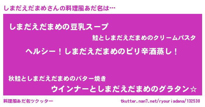 | 男性向けラノベタイトル風あだ名 | 『Re:しまだえだまめから始める異世界生活』 |