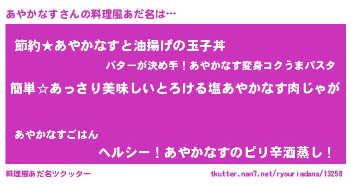 | ヘコむあだ名 | 『あやかなす(小並感)』『あやにゅー』 |