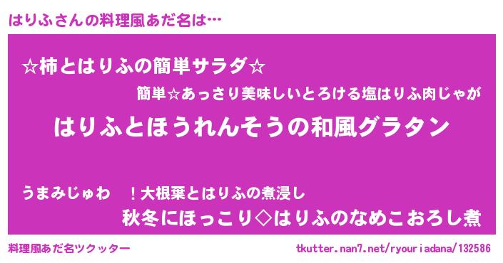 | 意味不明あだ名 | 『もやし科はりふ属』『永久保存はりふ』 |
