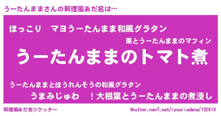 | 女子向けラノベタイトル風あだ名 | 『うーたんまま夫妻のなれそめ』 |