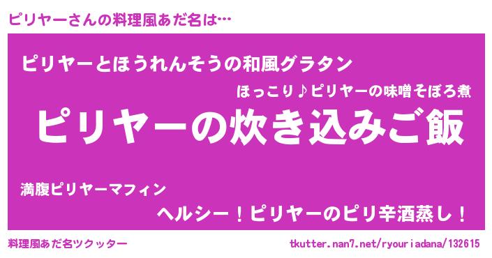 | 胡散臭い通販商品みたいなあだ名 | 『テレビで話題のアガリクス…その名も「ピリヤー」』 |
