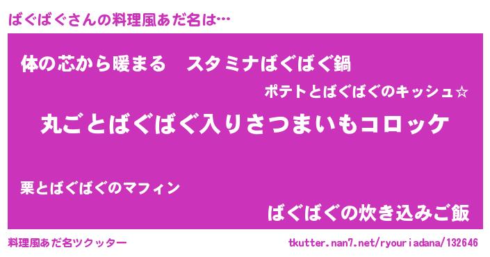 | 胡散臭い通販商品みたいなあだ名 | 『世界中を虜にした100年もののヴィンテージワイン…その名も「ばぐばぐ」』 |