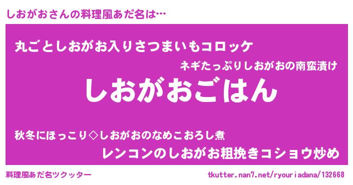 | 意味不明あだ名 | 『なめこ科しおがお属』『自称しおがお』 |