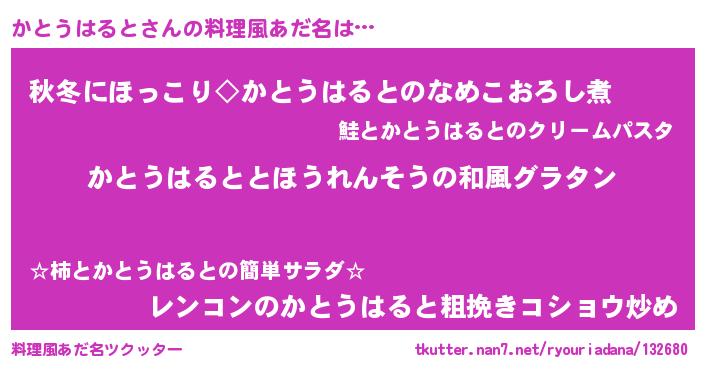 | 女子向けラノベタイトル風あだ名 | 『かとうはるとの玉の輿計画!』 |