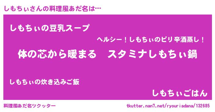 | ポケモン風あだ名 | 『シモチダネ』『ヒシモチィ』 |