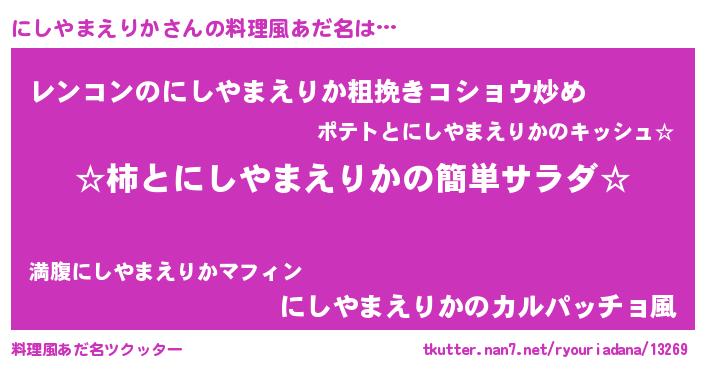 | 胡散臭い通販商品みたいなあだ名 | 『ガンによく効くアガリクス…その名も「にしやまえりか」』 |