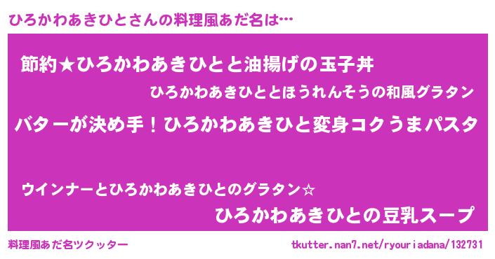 | 女子向けラノベタイトル風あだ名 | 『ひろかわあきひと恋絵巻』 |